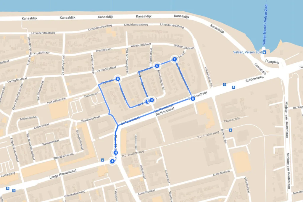 De wandeling is samengesteld door Mária de Krijger, voormalig docent en vrijwilligster bij de Historische Kring Velsen.